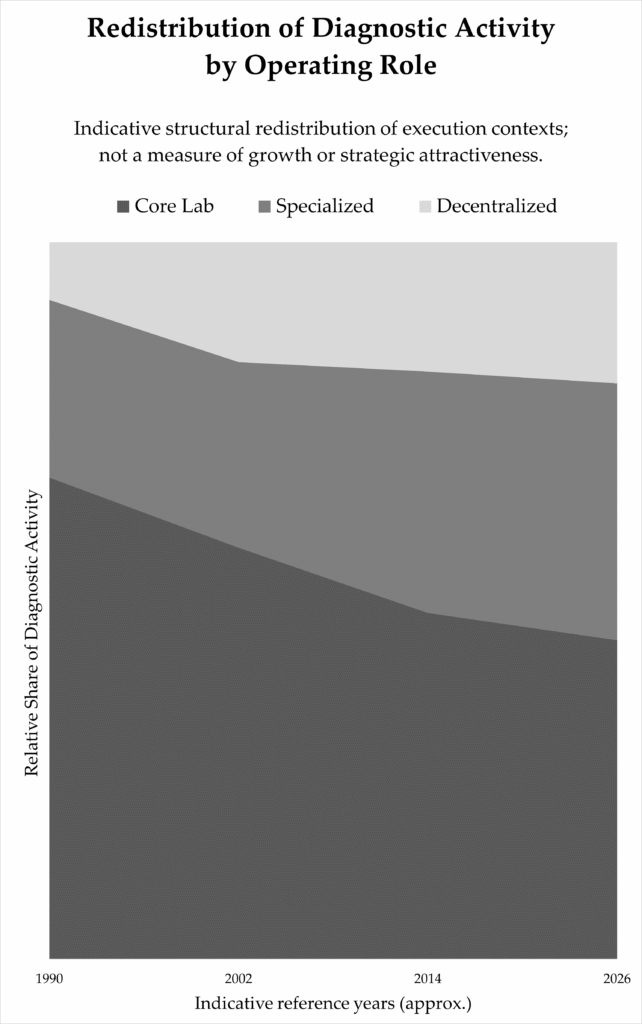 Core laboratories historically dominated execution, enabling scale and standardisation. Specialisation introduced disease-focused environments requiring deeper interpretive expertise. Decentralised settings expanded, bringing diagnostics closer to clinical decision points.